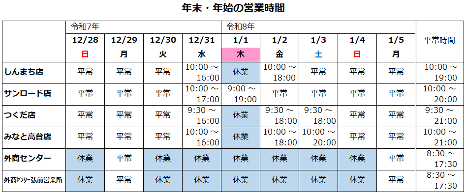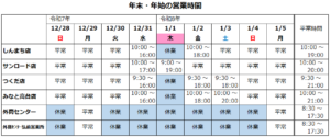 令和7年~8年 年末年始営業時間変更のおしらせ